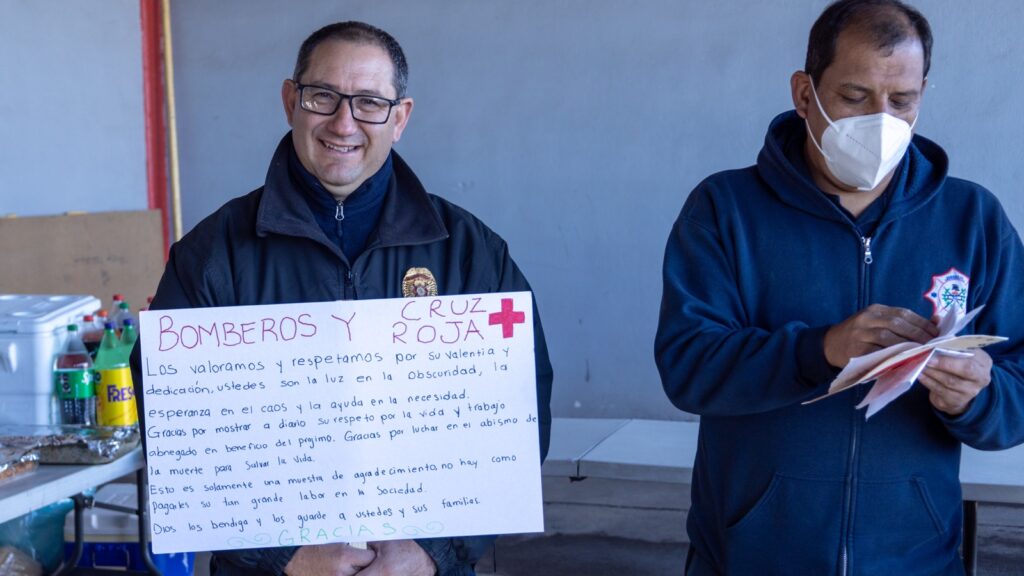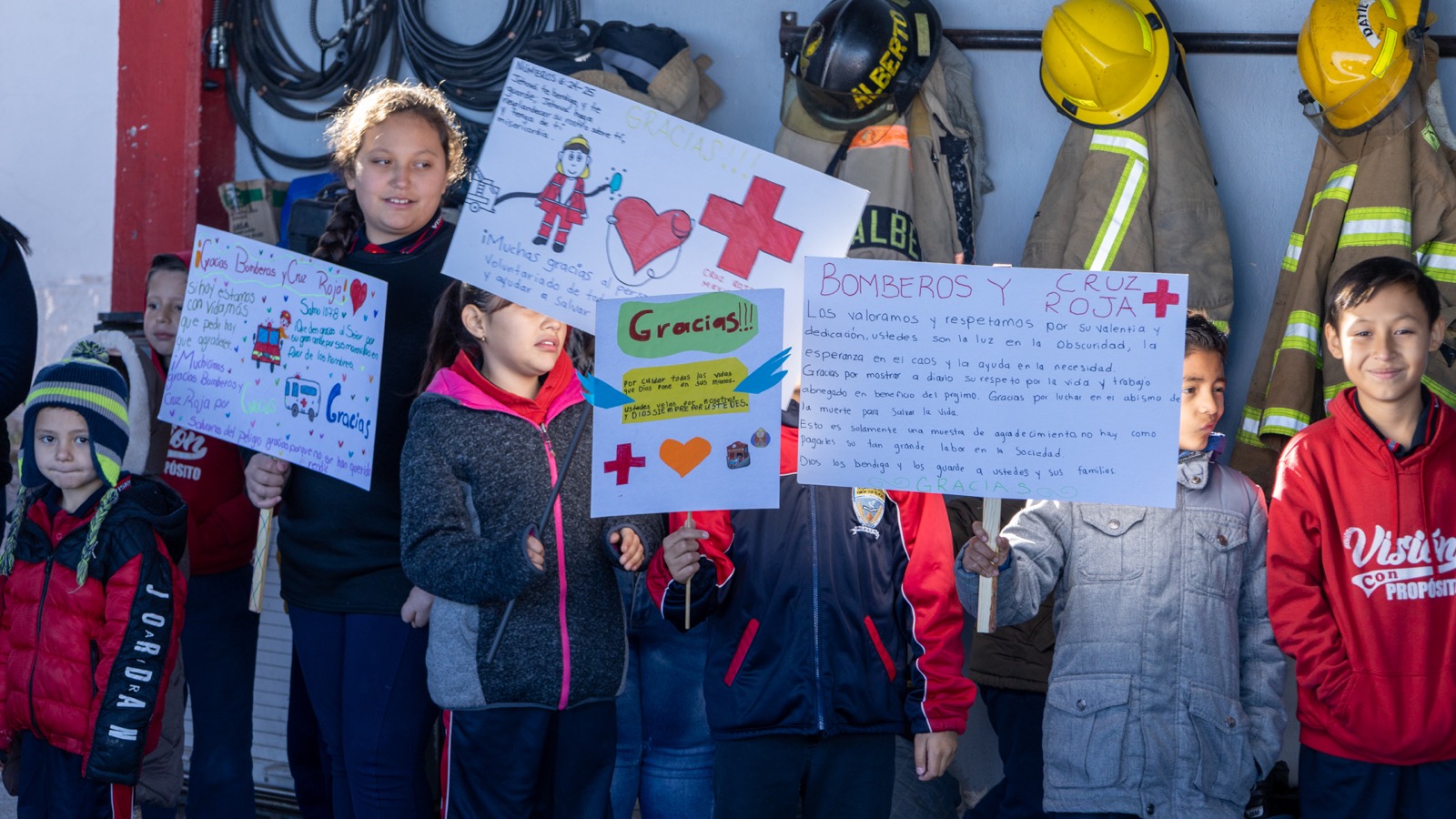 Cd. Cuauhtémoc, Chih.- Alumnos de la escuela Visión con Propósito decidieron celebrar el Día de Acción de Gracias con el Heroico Cuerpo de Bomberos y Paramédicos de Cruz Roja Delegación Cuauhtémoc.