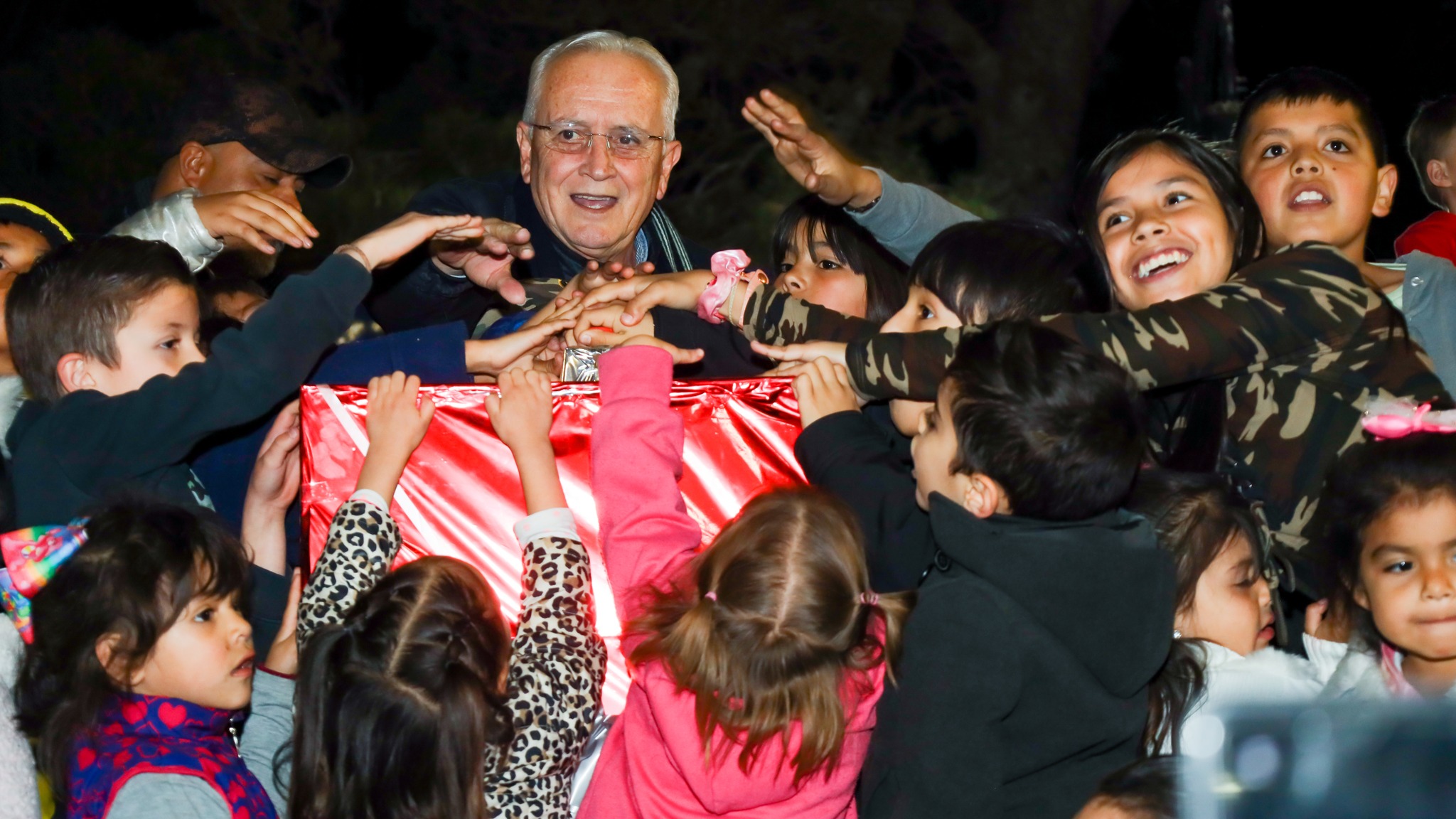 Cd. Cuauhtémoc, Chih.- El alcalde Beto Pérez, acompañado de niñas y niños, realizó el Encendido de Luces de la Plaza Principal y de la avenida Allende, durante un mágico evento en el que las familias asistentes disfrutaron del inicio de los festejos por Navidad.