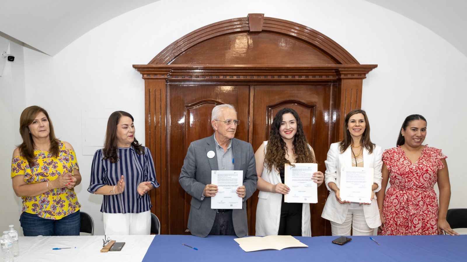 Por parte de Fundación Telefónica Movistar firmó la directora nacional Nidia María Chávez, y por parte del Gobierno Municipal, signaron el alcalde Beto Pérez y la directora del IMMujeres, Kathya Melina González.