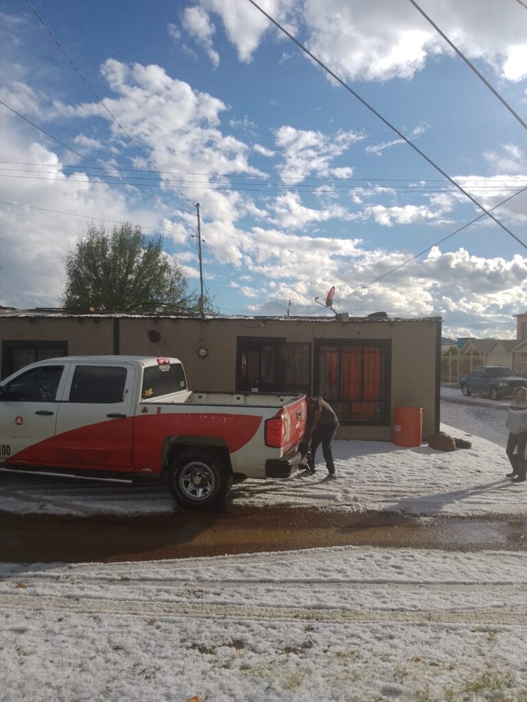 Cuauhtémoc, Chih.-Los elementos de la Unidad de Protección Civil Municipal atendieron diferentes reportes de auxilio derivados de la caída de granizo que se registró este domingo 9 de octubre, a las 16:30 horas.
