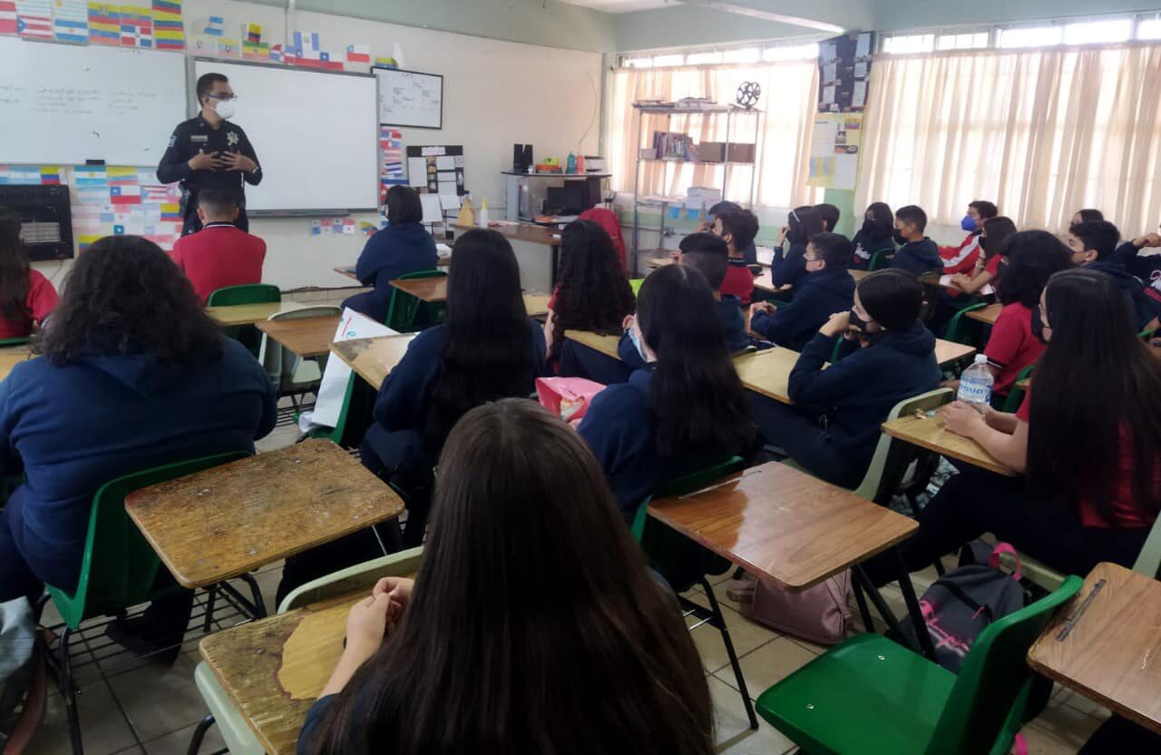 Cuauhtémoc, Chih.-La Dirección de Seguridad Pública Municipal de Cuauhtémoc, llevó pláticas preventivas sobre Escuela Segura y Acoso Escolar, a las y los estudiantes de la Escuela Secundaria Técnica 51, que se ubica en la calle Argentina y Belisario Chávez.