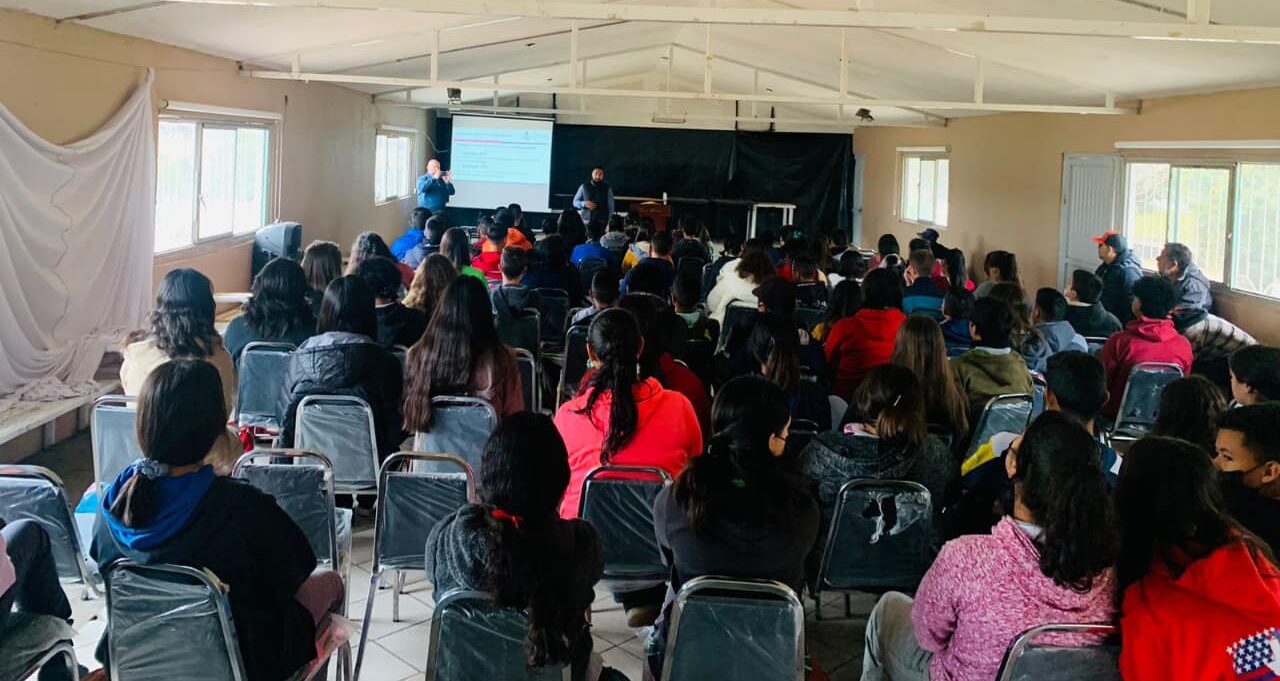 Personal de la Unidad de Investigación de Extorsiones y Narcomenudeo de la Fiscalía de Distrito Zona Occidente, impartieron una plática preventiva a los estudiantes de la secundaria José Martí, en Álvaro Obregón (Rubio), municipio de Cuauhtémoc.