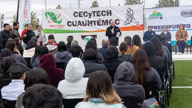 Expresó sentirse orgulloso de este plantel por su crecimiento académico y deportivo, lo que significa la promoción de valores como el trabajo en equipo, la responsabilidad y el respeto. Afirmó que Cuauhtémoc avanza en obra pública y muestra de ello es el recién inaugurado Centro de Convenciones Centenario Tres Culturas.