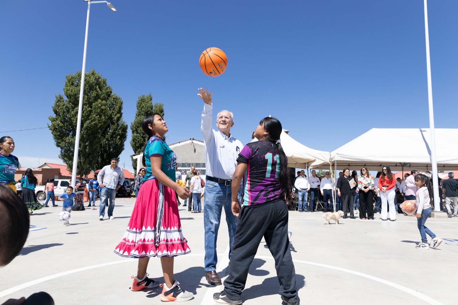 Además del corte del listón, otra manera de celebrar fue un partido de basquetbol entre jugadoras de varios equipos de la etnia tarahumara.