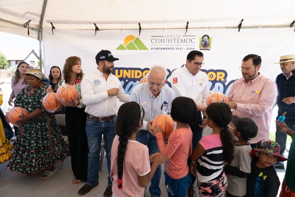 Durante el evento, la Dirección de Desarrollo Social y el Instituto Municipal de Cultura Física y Deporte, obsequiaron balones de futbol y basquetbol a niños y jóvenes que habitan en la colonia Rayénari.