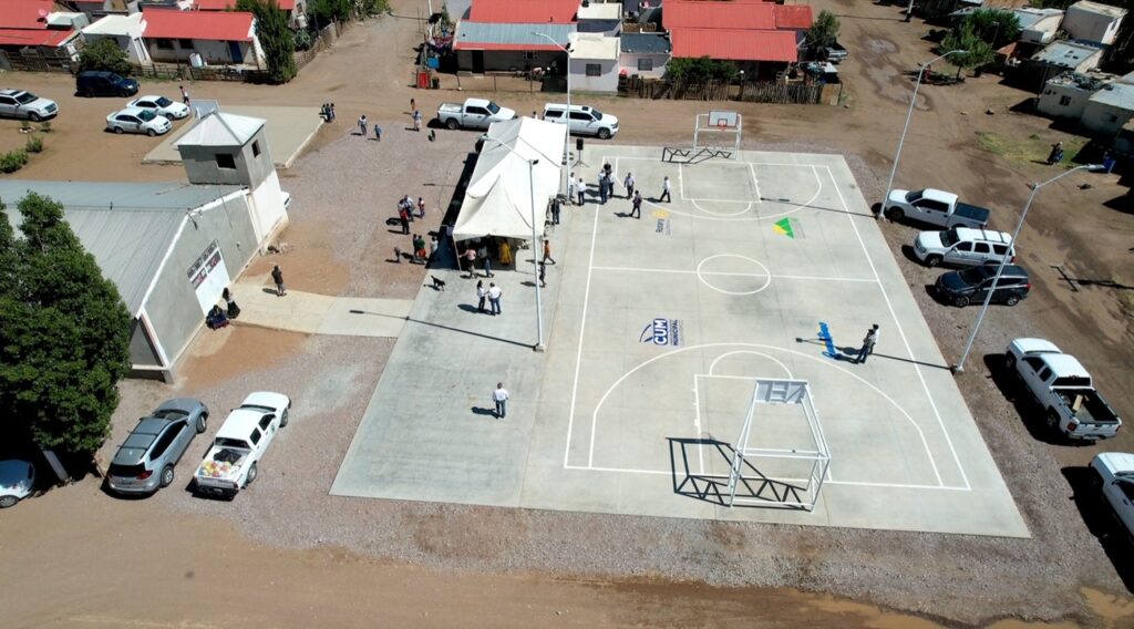 Cd. Cuauhtémoc, Chih.- Con una inversión compartida de 590 mil pesos, entre el Gobierno Municipal y el Club Rotario Cuauhtémoc, se construyó una cancha de usos múltiples en la colonia Rayénari, para la práctica del deporte y actividades de los hermanos tarahumaras que ahí habitan.