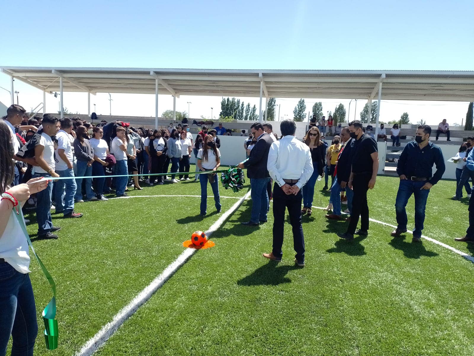 Los invitados realizaron el corte del listón y el primer tiro penal corrió a cargo del regidor Jesús Avilés, para posteriormente celebrar un partido amistoso entre equipos representativos del colegio.