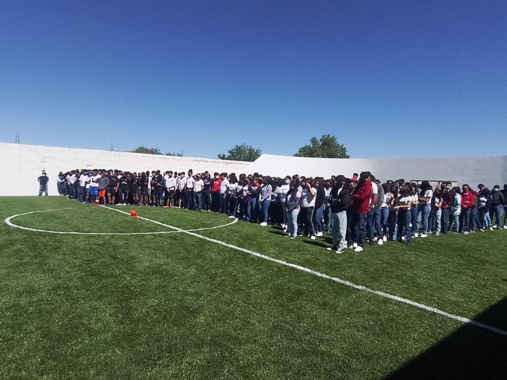 Cuauhtémoc, Chih.- Durante la mañana de este 25 de mayo, en las instalaciones del CONALEP 218, de esta ciudad, se inauguró el empastado de la cancha del plantel, esto para beneficio de los deportistas y la comunidad escolar en general.