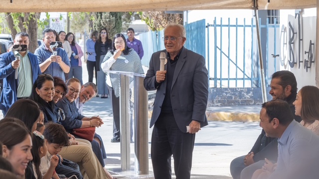 Hiram Esparza, director del CBTis 117, habló en nombre de instituciones educativas del sector beneficiadas, como Secundaria Santini, centro educativo Tatowí, Conalep y Secundaria Técnica 51, entre otras.