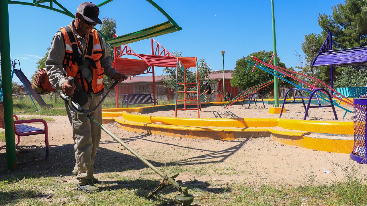 Cuauhtémoc, Chih.- En los primeros cien días de la Administración Municipal 2021-2024, a través de la Dirección de Servicios Públicos Municipales, se han rehabilitado 110 de los 205 parques de la ciudad, retirando la hierba y la basura, y realizando labores de pintura.