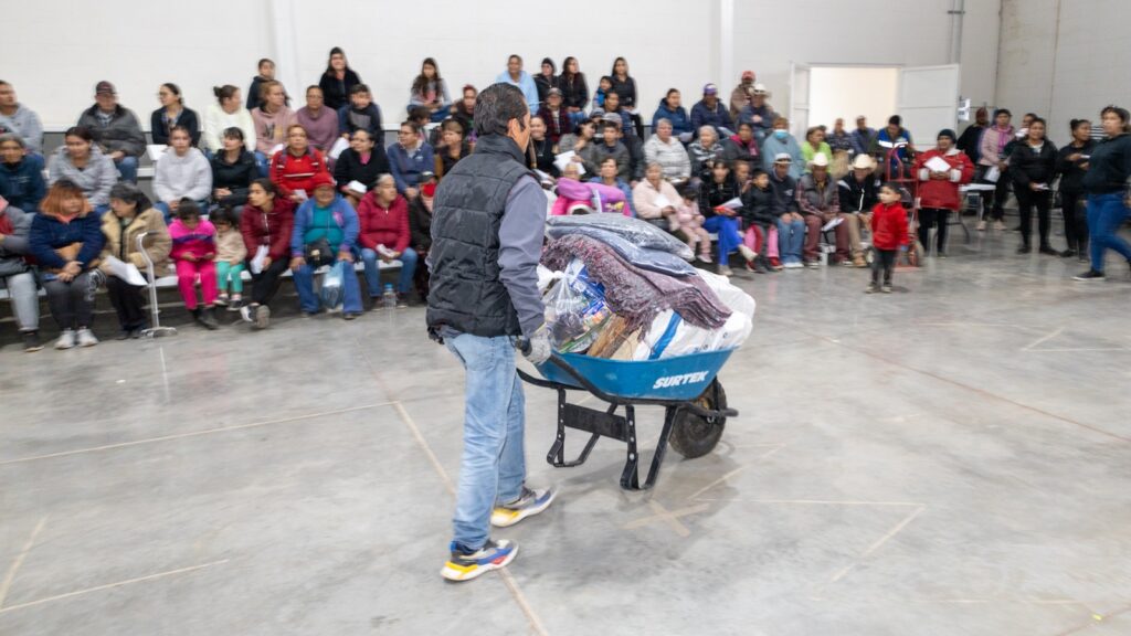 Consta de la entrega de chamarras para niño y adulto, costales de leña, cobijas y despensas. Las familias con mayor necesidad reciben paquetes que incluyen todos los apoyos.