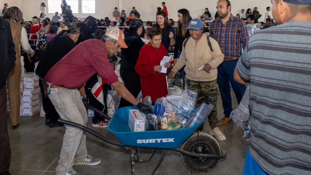 Se distribuyeron entre las personas que más lo necesitan: 1000 costales de leña, 1000 cobijas, 1000 chamarras, 1000 despensas y 350 pares de zapatos.