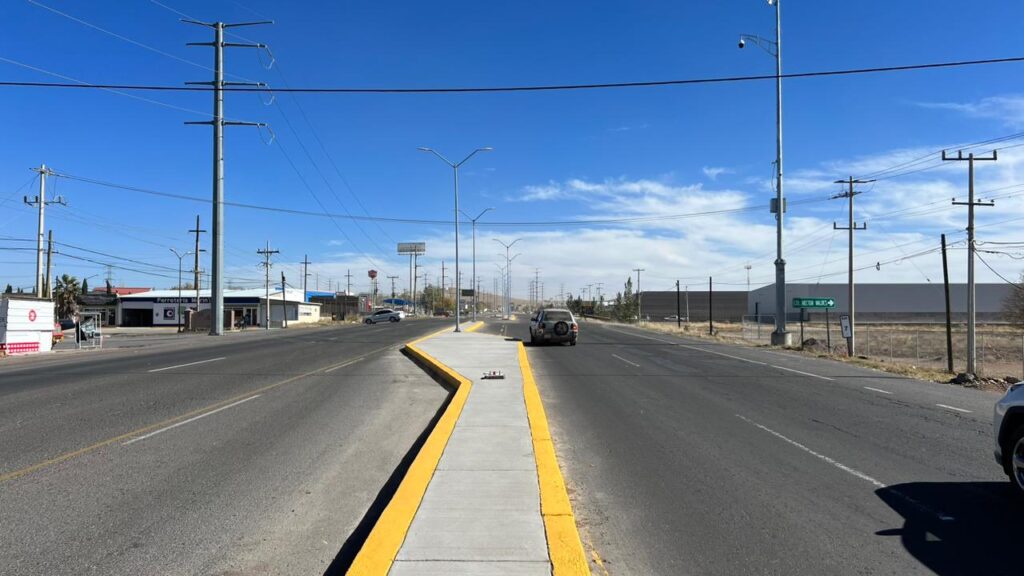 Comenzó la instalación de alumbrado público en el Libramiento Manuel Gómez Morín, en el tramo donde el Gobierno Municipal de Cuauhtémoc realiza un proyecto de mejoramiento que incluye la construcción de un camellón central.