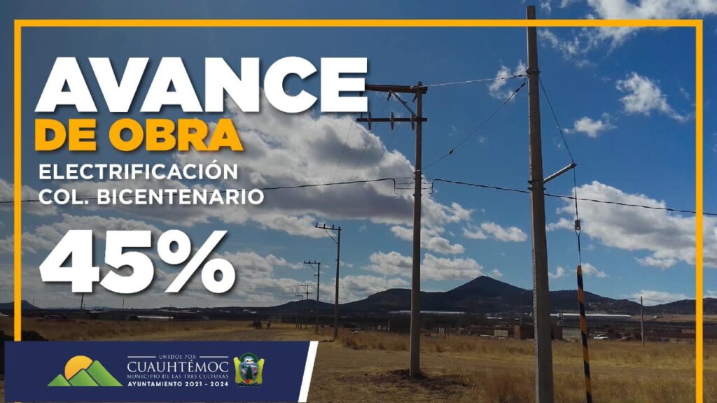 En la ciudad de Cuauhtémoc, las obras de agua potable y electrificación en la colonia Bicentenario, llevan un avance del 45%.