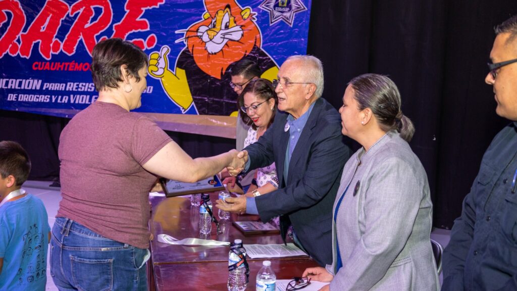 El presidente municipal Beto Pérez estuvo presente en la graduación de la XI Generación del programa D.A.R.E., en el que 800 estudiantes de cuatro instituciones de nivel básico fueron capacitados por Policías Certificados en esta metodología.