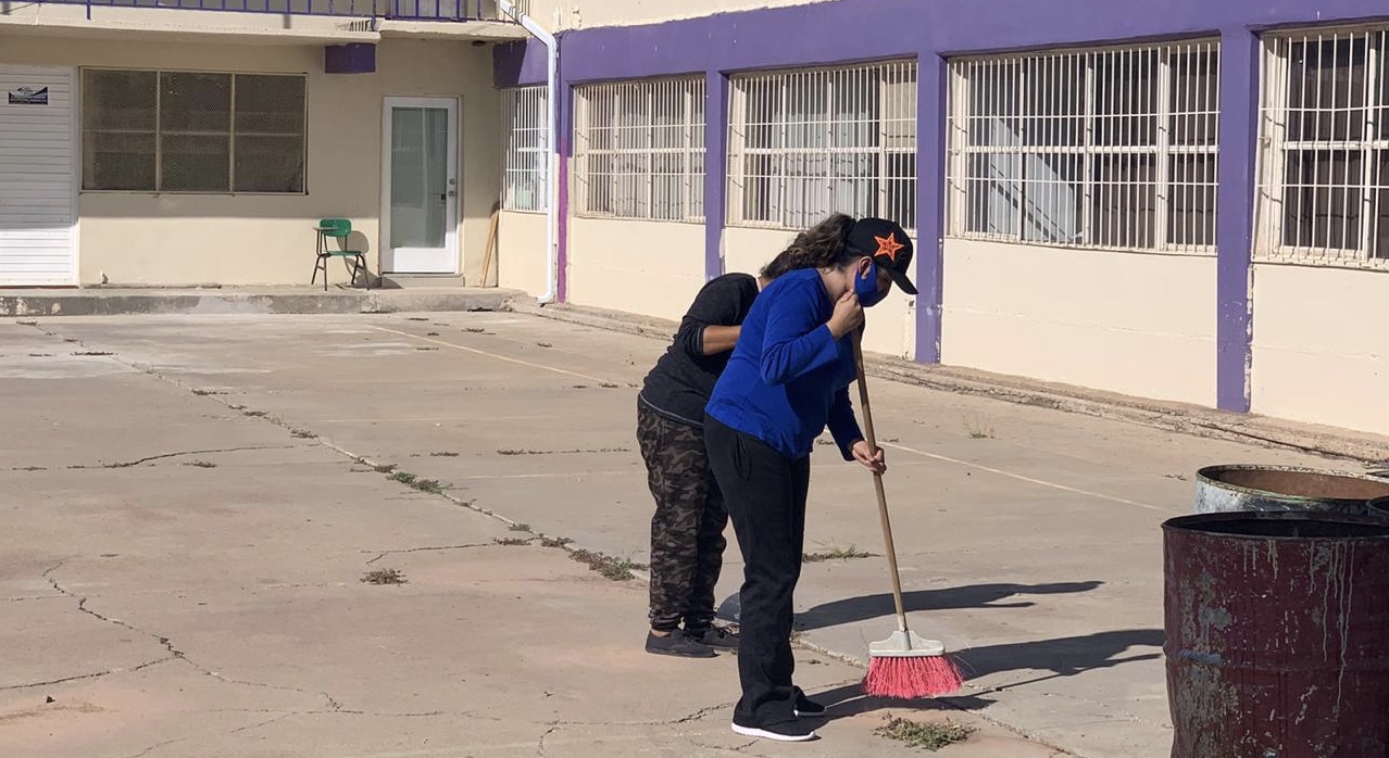 La labor consiste en la limpieza en general de salones, así como también en aplicar pintura de las aulas donde así se requiere, juegos recreativos y bebederos, además de hacer destilichadero. Esto con el fin de mantenerlas en condiciones de uso en caso que el ciclo escolar sea con clases presenciales.