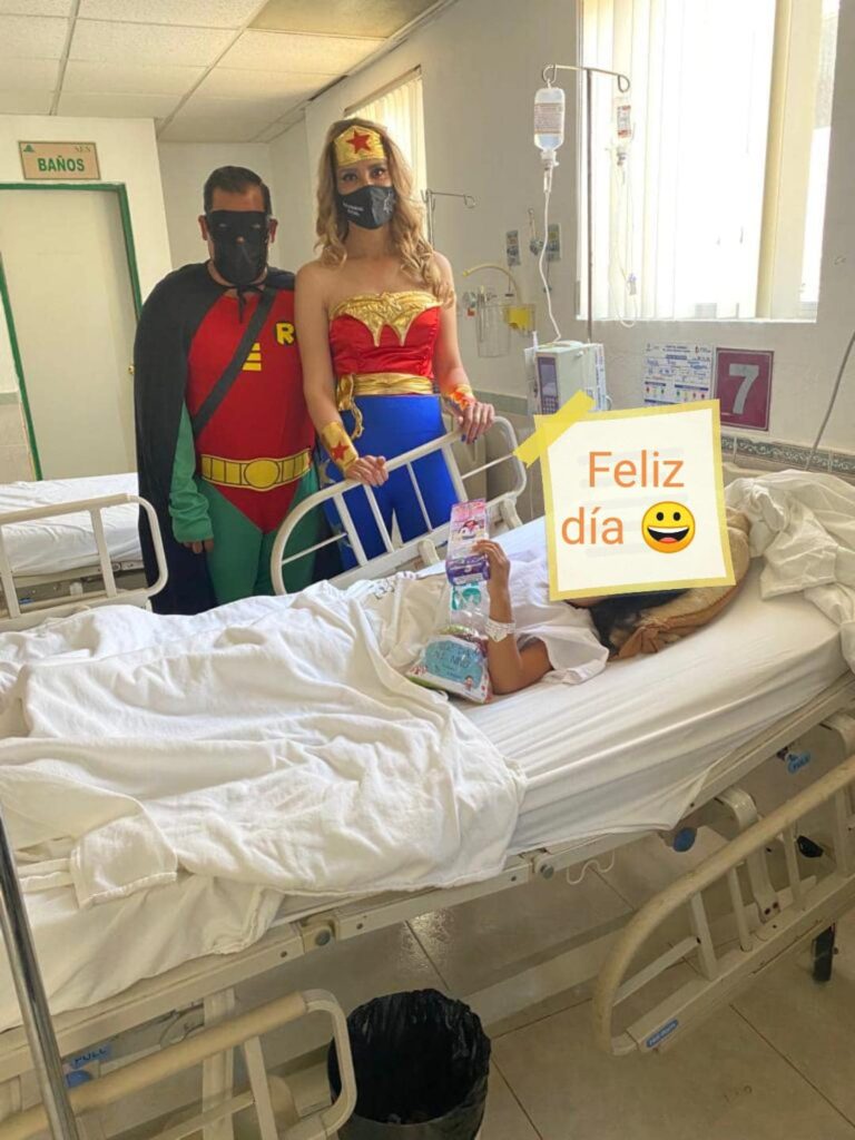 Vestidos como Super héroes, visitaron a los internos, quienes no esperaban esta sorpresa que les alegró el día a quienes atraviesan un momento complicado, olvidando un poco la enfermedad y conviviendo con ellos.