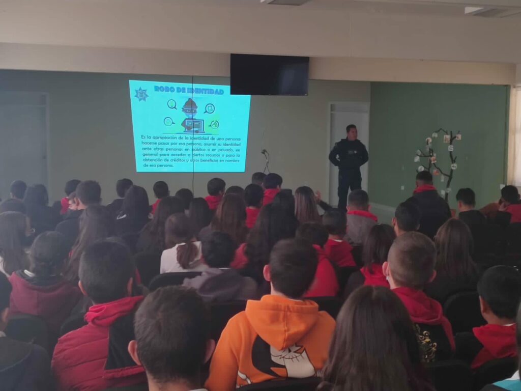 Cuauhtémoc, Chih.-Como parte de las acciones para prevenir conductas inadecuadas o riesgos por el uso incorrecto de las redes sociales en menores de edad, agentes del Grupo D.A.R.E., pertenecientes a la Dirección de Seguridad Pública Municipal, adscritos a la Policía Seccional de Anáhuac, llevaron pláticas a los estudiantes de la Secundaria Técnica 27 de aquella comunidad.