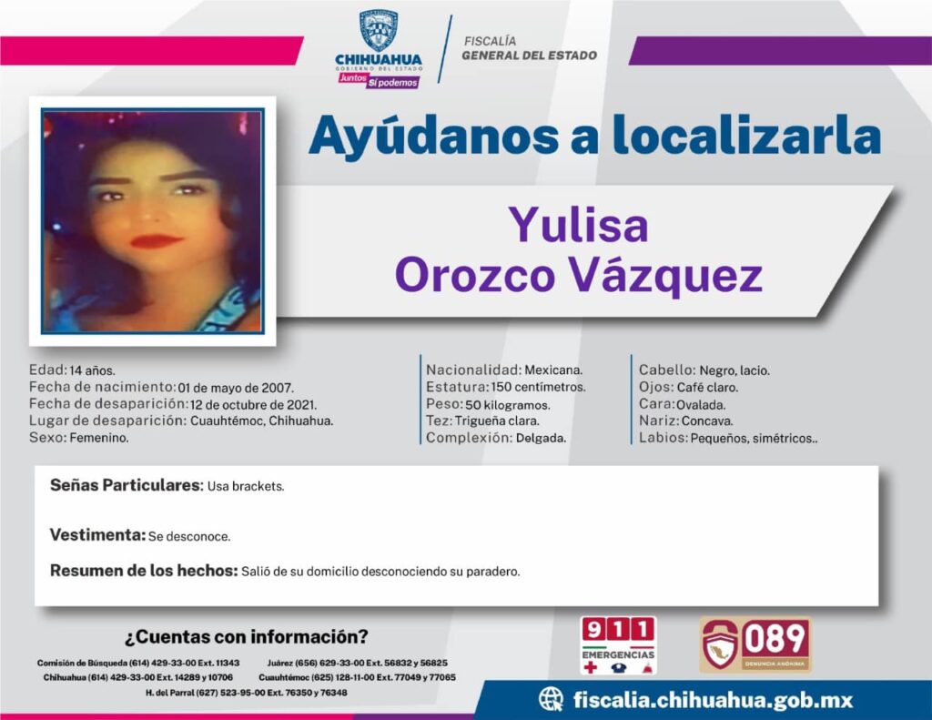 En los últimos días, personal de la Unidad de Investigación de Personas Desaparecidas o Ausentes, lleva a cabo indagatorias a través de entrevistas con familiares y el círculo de amistades de Yulisa y Víctor Manuel Orozco Vázquez, de 14 y 17 años de edad, respectivamente.
