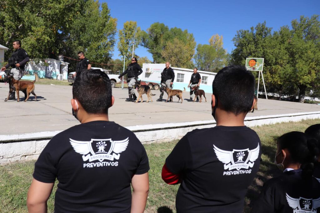 El Presidente Municipal saludó a las niñas y a los niños, a las madres y a los padres de familia, de igual manera al personal docente y a los elementos del Grupo K9, el Programa DARE, y Programas Preventivos, pertenecientes a la Dirección de Seguridad Pública Municipal, y al Mando Único.