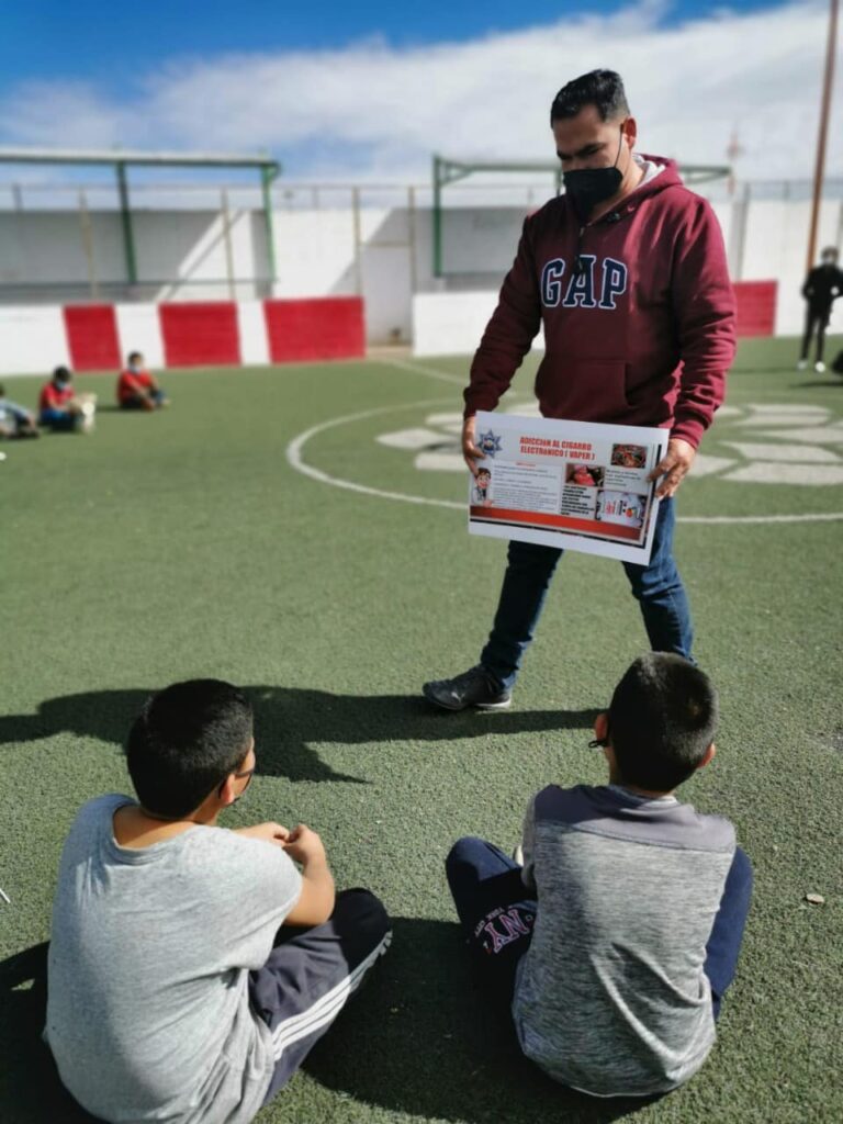 En la plática, que se realizó al aire libre, se habló acerca de las drogas legales, como el alcohol, cigarrillo y los vapers (cigarro electrónico). Se les advierte que utilizar este tipo de sustancias, puede ocasionar daños a la salud de manera irreversible, así como ambientes de violencia y abuso.