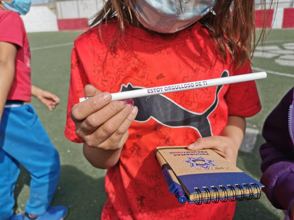 Una vez concluida la charla, hubo un encuentro de fútbol rápido entre los niños, niñas y personal de Programas Preventivos, para reforzar los lazos de convivencia. Cada uno de los asistentes a la plática, recibieron como regalo, una libreta y pluma ecológica, en donde se pueden leer los números de emergencias, así como un lápiz que muestra frases de apoyo y superación, para los menores.