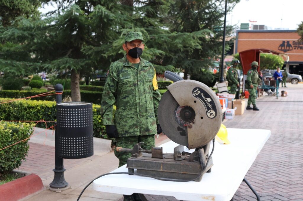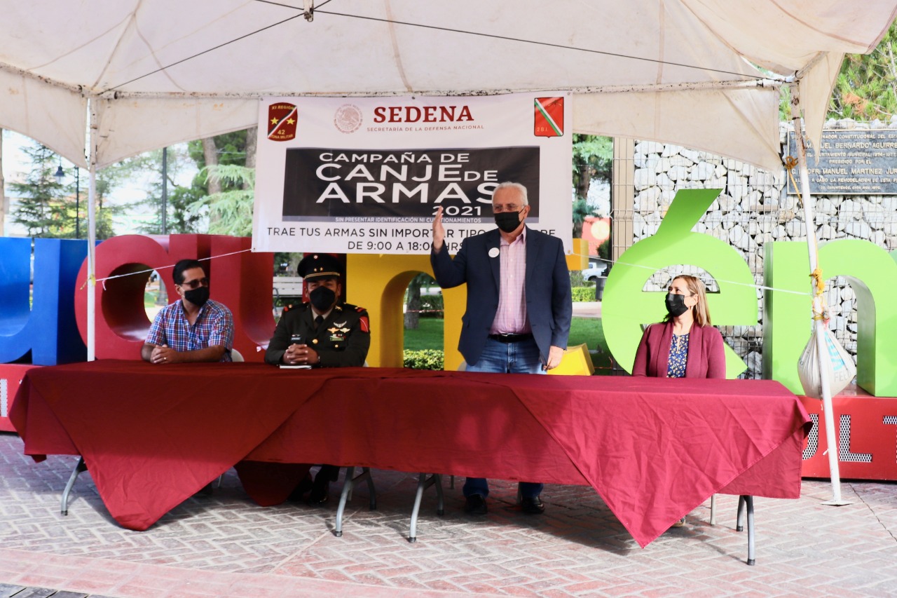 Cuauhtémoc, Chih.- El alcalde Elías Humberto Pérez Mendoza invitó a la ciudadanía a aprovechar el canje de armas que está realizando la Secretaría de la Defensa Nacional, en la Plaza Principal.