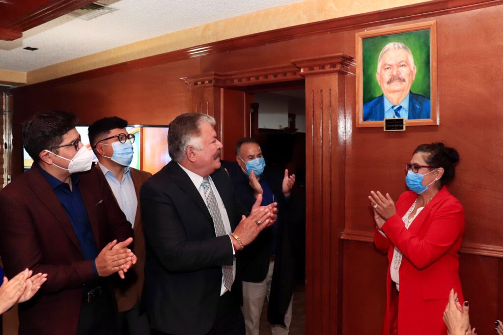 Finalmente, Romeo Antonio Morales Esponda, en compañía de su familia, develó su retrato que quedará plasmado en la galería de ex presidentes dentro de la sala de Cabildo.