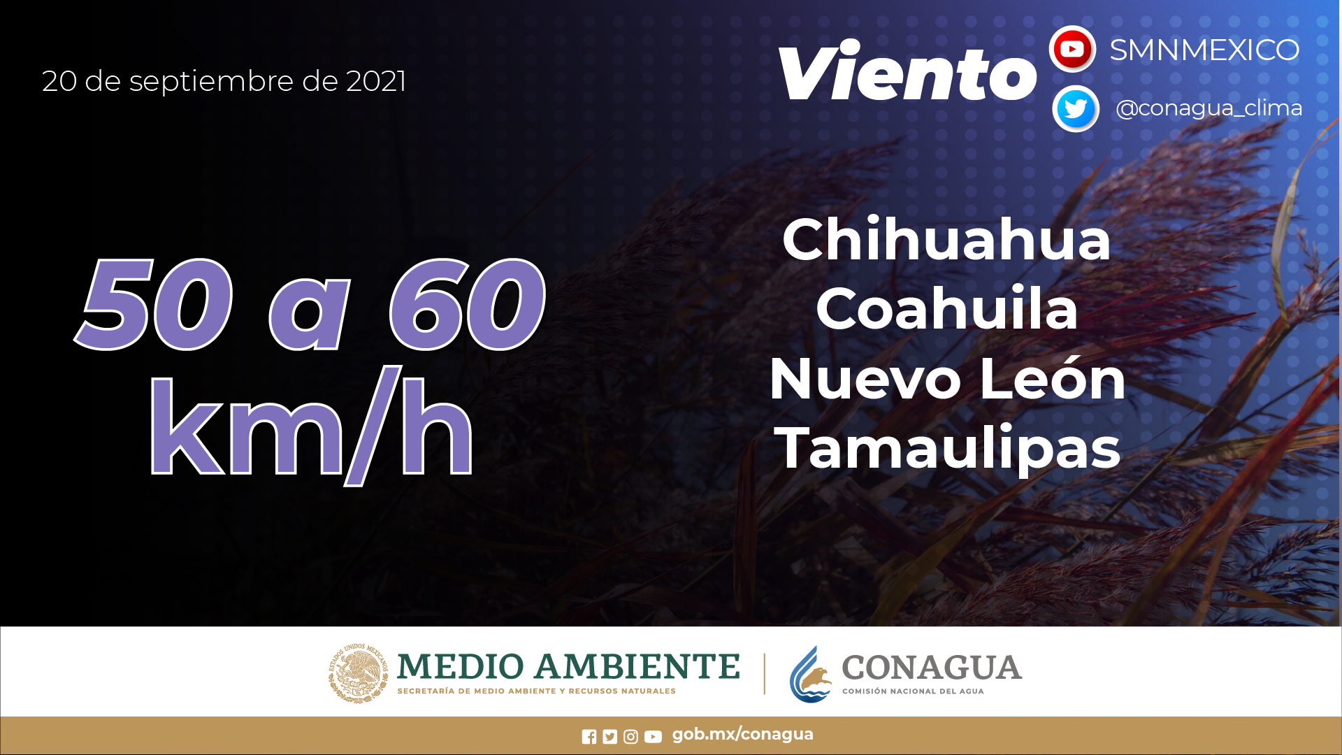 El Servicio Meteorológico Nacional pronostica para este lunes vientos fuertes con rachas de 50 a 60 kilómetros por hora (km/h) en Chihuahua, Coahuila, Nuevo León y Tamaulipas.