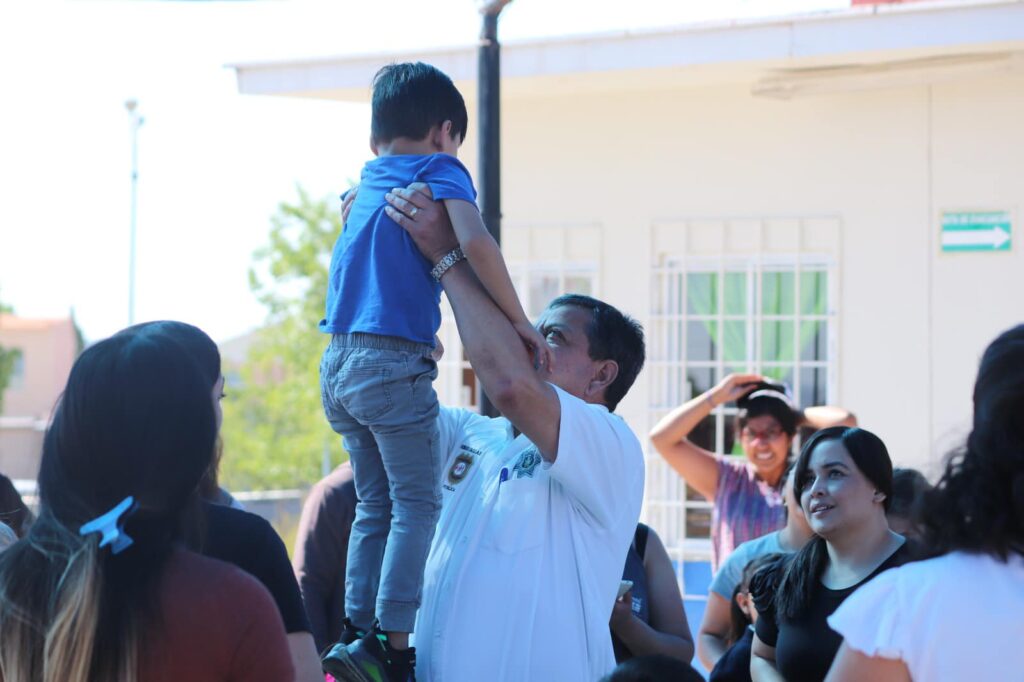 Cuauhtémoc, Chih.- Como cada lunes, la Dirección de Seguridad Pública Municipal, a través del área de Programas Preventivos, acudió a una institución educativa de nivel básico para estar presente en los honores a la Bandera Nacional, dentro del programa “Reafirmando los valores patrios en las escuelas”, además de realizar una clase de matrogimnasia para refuerzo del vínculo familiar.