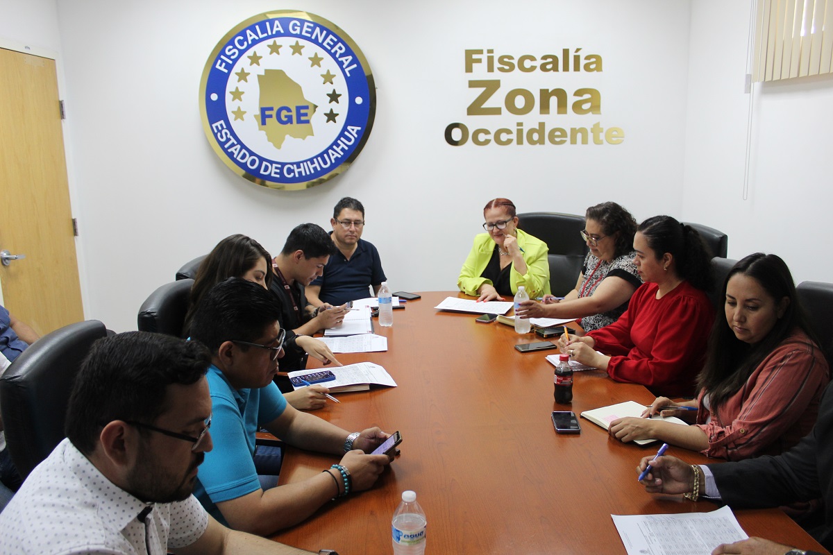 La reunión se llevó a cabo en la sala de juntas de la Fiscalía Zona Occidente en la que también estuvieron presentes los coordinadores de las diferentes unidades especializadas de investigación del delito.