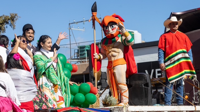 La presencia de escoltas; bandas de guerra; carros alegóricos; cuadros de gimnasia rítmica, bailables, y porra; estuvo a cargo del CBTa 90, Escuela de Enfermería del Ichisal, Cecytech, Universidad Tecnológica de Chihuahua, Centro de Estudios Especializados en Educación Superior, Conalep y Colegio Cuauhtémoc Bachillerato.