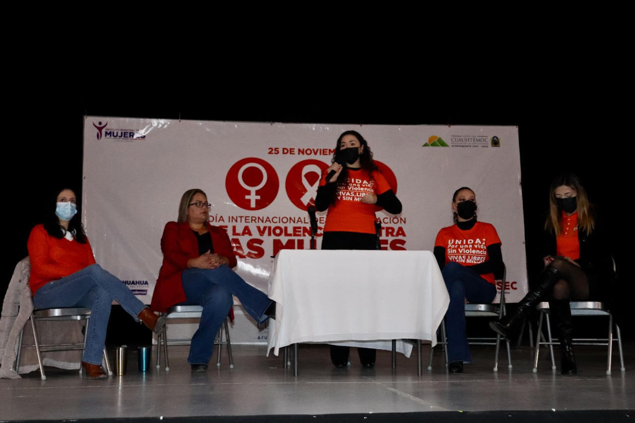 Cuauhtémoc, Chih.- El Instituto Municipal de las Mujeres organizó la mesa panel “Rompiendo esquemas, pongamos fin a la violencia contra las mujeres”, en la que participaron expertas en el tema: representantes del Cavim, la Fiscalía de la Mujer, Ficosec Cuauhtémoc y Ceave; asistieron estudiantes de la Secundaria Técnica 51 y el CBTis 117.