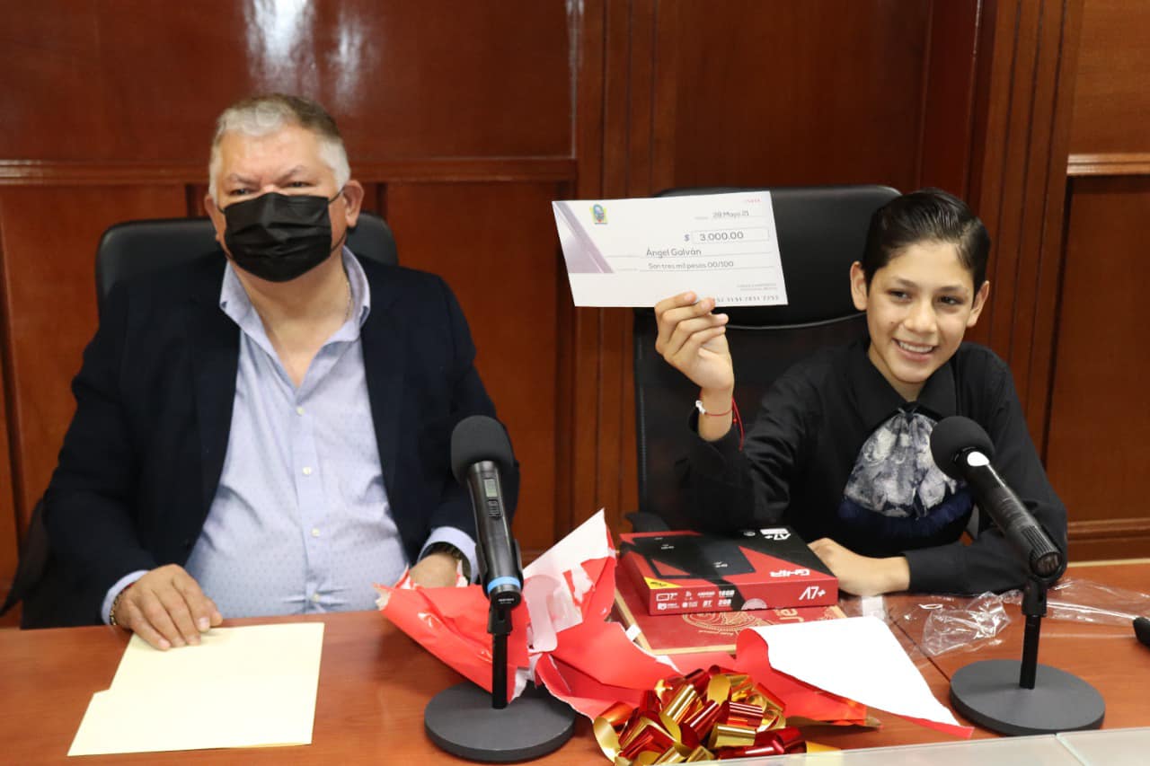 De igual manera, le regaló una tableta electrónica para poder ayudarse al realizar las tareas escolares, una dotación de dulces y chocolates, así como un estímulo de 3 mil pesos en efectivo.