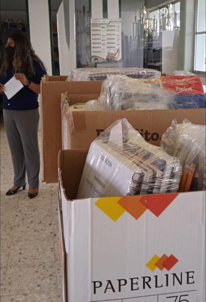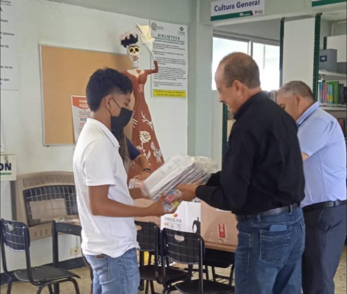 Durante una sencilla entrega, los jóvenes beneficiados recibieron los kits de útiles, que constan de 10 cuadernos, calculadora científica, lápices, plumas, lapiceros, borradores, sacapuntas, juego de geometría, entre algunos otros materiales que son necesarios para el uso durante el ciclo escolar.