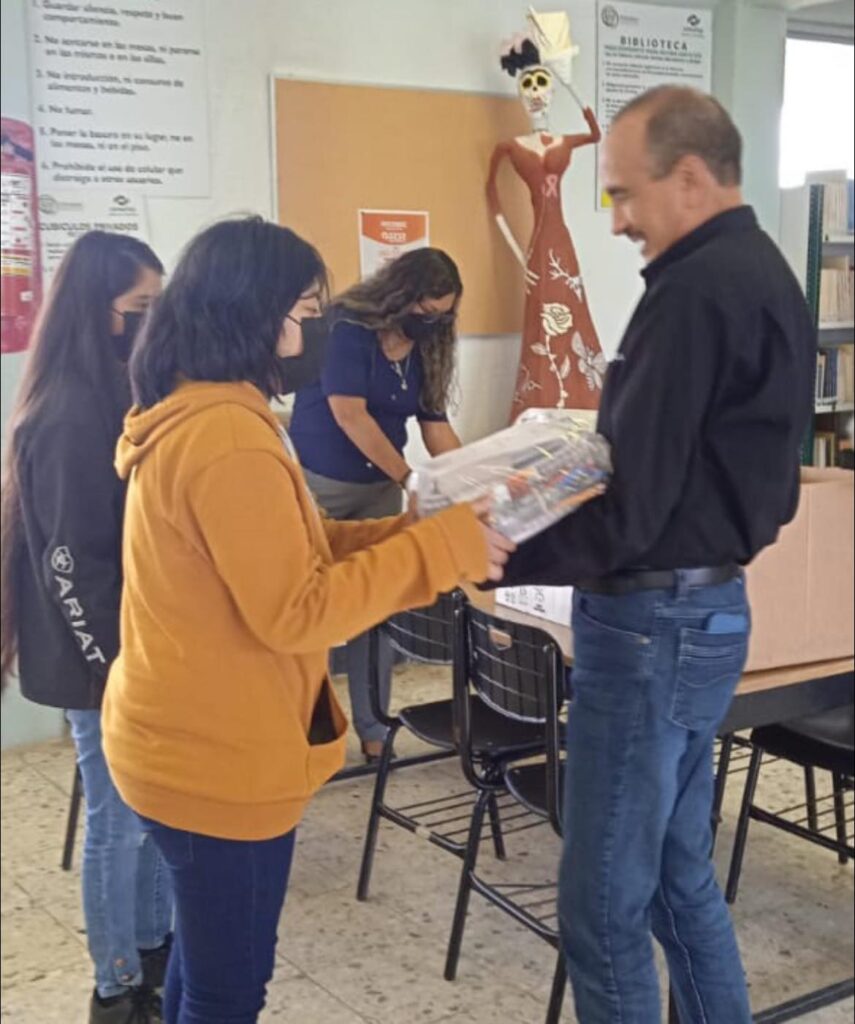 La entrega estuvo a cargo del director de operaciones de Elektrisola, Roberto del Castillo Acosta, quien fue recibido por el director del plantel, Carlos Pérez Lugo y la jefe de vinculación Cynthia Coronado.