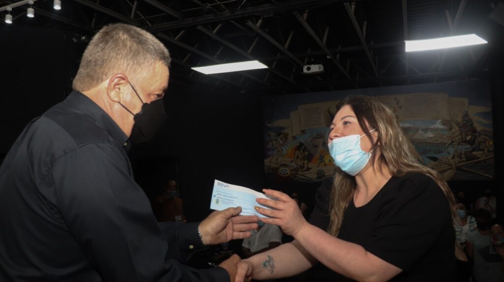 Este lunes 23 de mayo, se entregaron 195 mil pesos en total a 18 mujeres y 3 hombres, que invertirán el recurso en hacer crecer sus negocios de diversos giros: abarrotes, alimentos, ropa, belleza, diseño, papelería, talabartería y pastelería, entre otros.