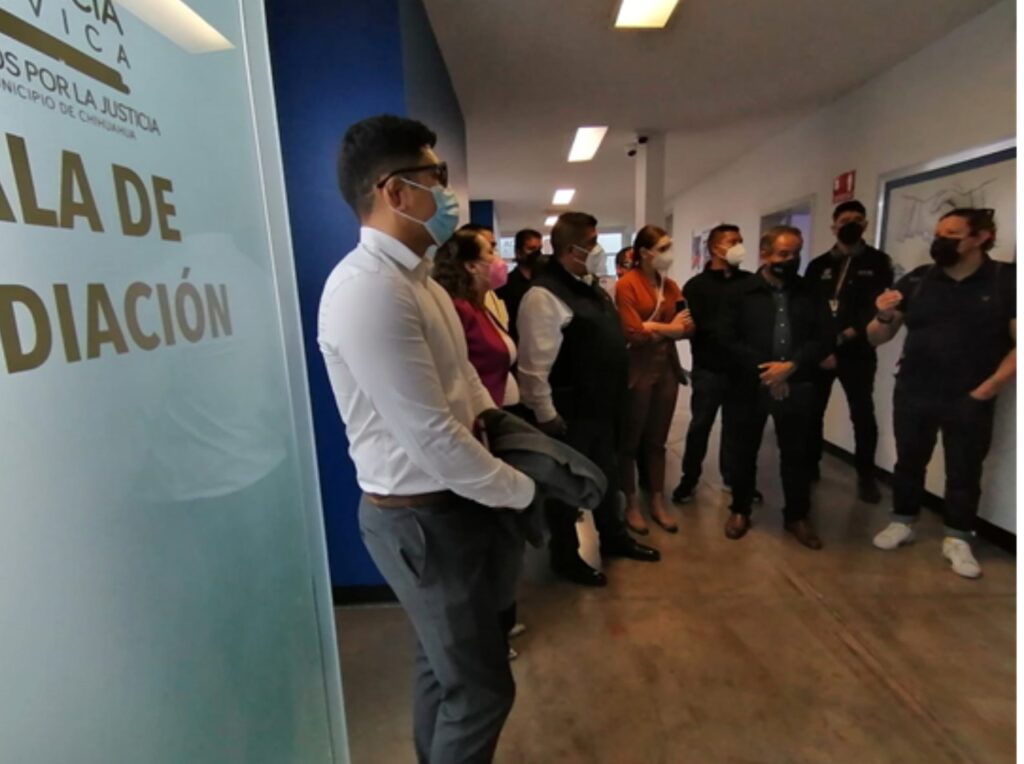 Chihuahua, Chih.- Funcionarios del municipio de Cuauhtémoc realizaron una visita a las salas de audiencias e instalaciones de Justicia Cívica de la Dirección se Seguridad Pública Municipal (DPSM), con el fin de replicar este modelo, por los resultados que se han logrado con este novedoso sistema de impartición de justicia administrativa.