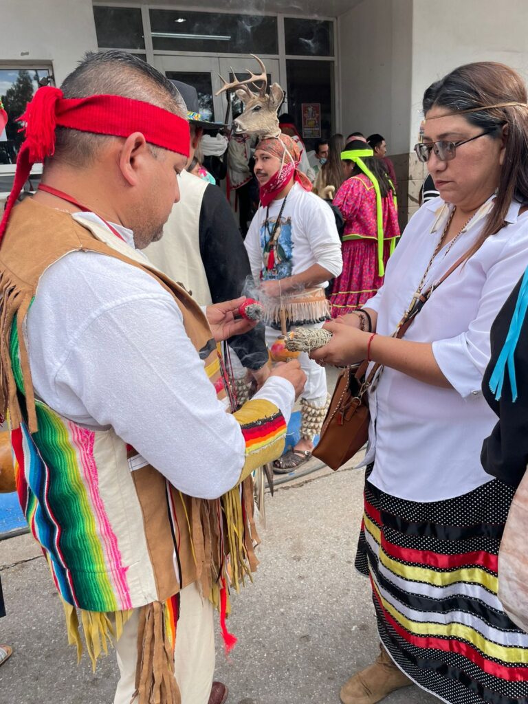 Entre los actos más representativos se realizó la tradicional danza de la pascola y matachines por un grupo de mujeres del asentamiento indígena local, así como la bendición de los cuatro puntos cardinales, por parte de nativos Apaches de la tribu Lipan.