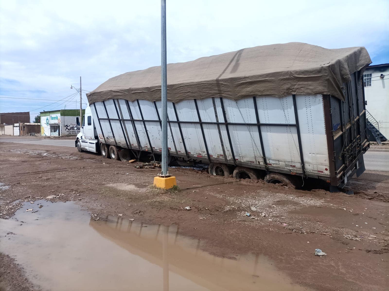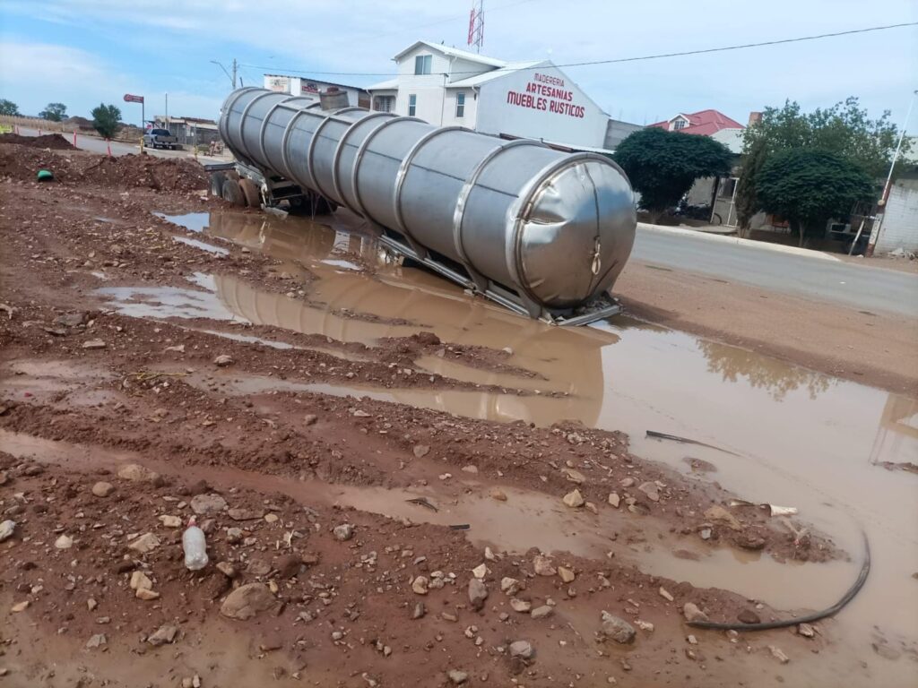 Dadas las precipitaciones del día anterior y las condiciones del suelo ante trabajos previos realizados por una empresa de gas natural, las pesadas unidades se hundieron.