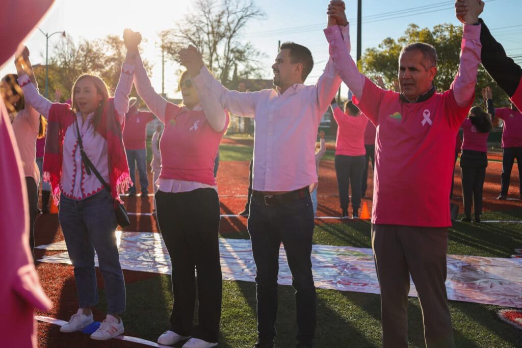 En su mensaje, el presidente municipal Beto Pérez fue el primero en pronunciar dicha frase y expresó un reconocimiento muy especial a la asociación civil Resurgir, conformada por sobrevivientes de cáncer de mama que dedican su vida a ayudar a quienes lo padecen.