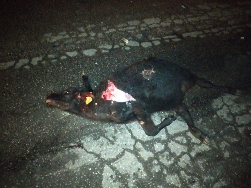 Este vehículo era conducido por Gilberto C. O., de 34 años de edad, el cual resultó lesionado de consideración y fue trasladado a un hospital, luego de impactar un ejemplar vacuno que falleció en el lugar y diversos objetos fijos (señalamientos) lo que ocasionó que el vehículo volcara, generándose daños materiales por la cantidad aproximada de 100 mil pesos.