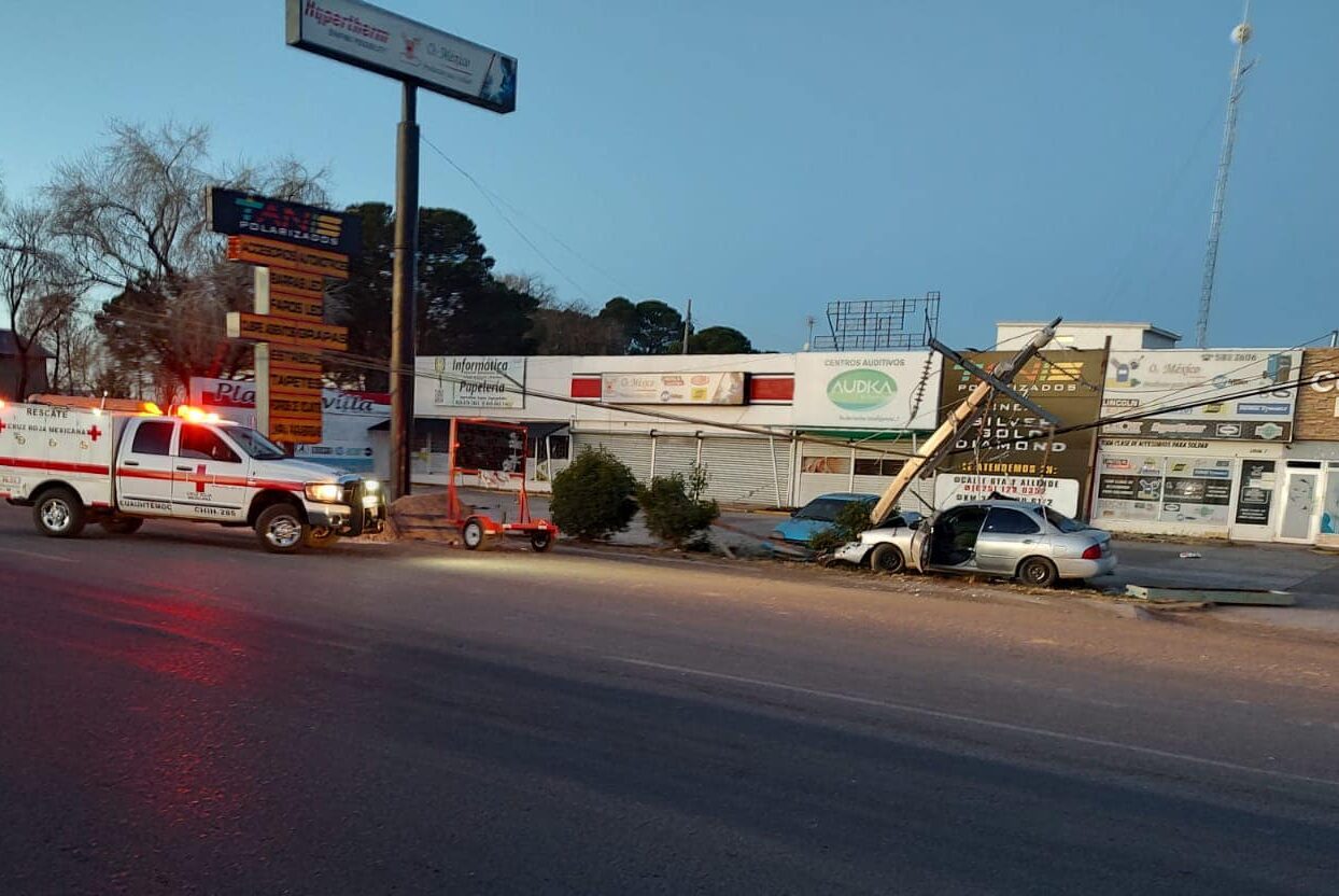 El automóvil circulaba de norte a sur, sobre esta avenida cuando el conductor perdió el control de la unidad y se impactó contra un poste, propiedad de la Comisión Federal de Electricidad, que se ubica en este lugar.