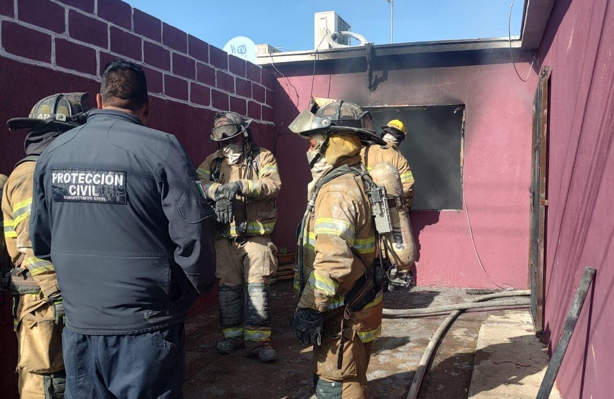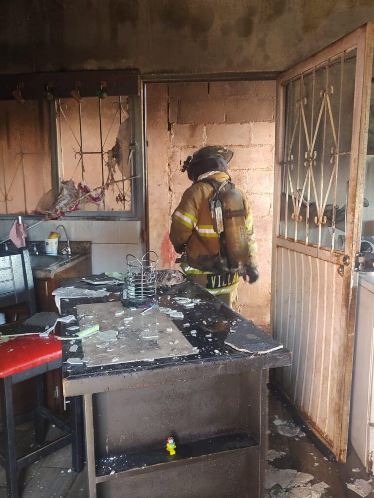 Elementos del Departamento de Bomberos de Cuauhtémoc, se hicieron cargo de sofocar el fuego, informando que se registraron daños totales en la vivienda, así como en un vehículo Dodge Attitude 2006, color guinda,con placas DWY-171-A.