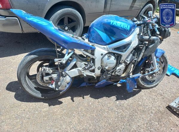 Los agentes revisaron una motocicleta de la marca Yamaha, línea YZFR6, modelo 2002, color azul que fue llevada de manera voluntaria a las instalaciones de la Fiscalía Zona Occidente por la persona que la poseía y requería saber su situación legal.
