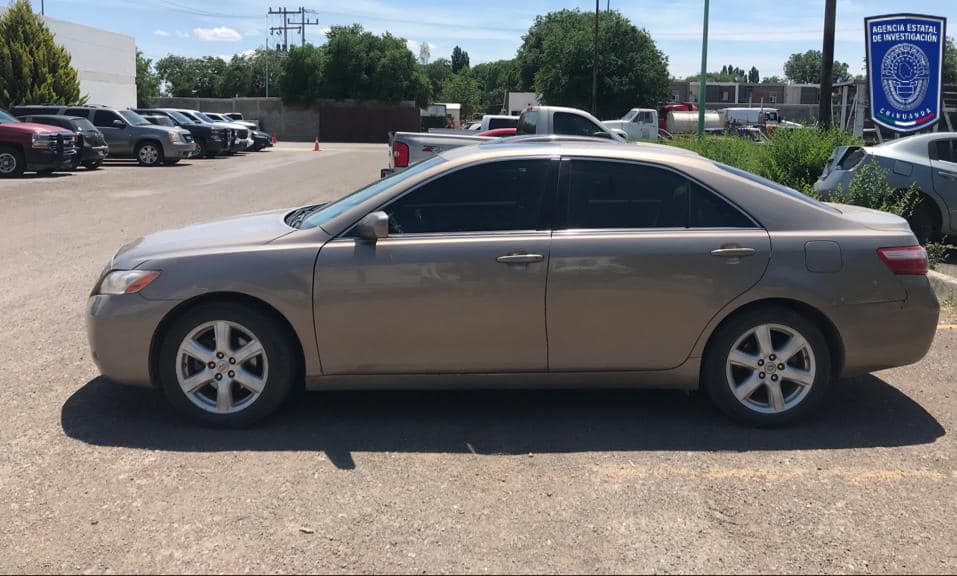 Se trata de un sedán de la marca Toyota, línea Camry, modelo 2008, color dorado, sin placas de circulación, el cual cuenta con reporte de robo del 8 de diciembre del 2022, en Ciudad Juárez.