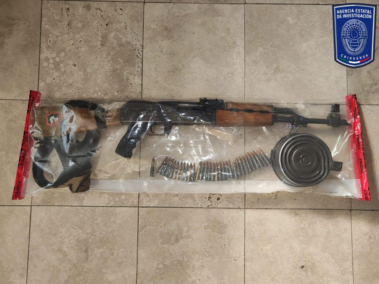 Al regresar hacia el punto en donde los observaron inicialmente, tuvieron a la vista un arma larga calibre 7.62 x 39 milímetros con su respectivo cargador, 31 cartuchos útiles y un teléfono celular en color negro. en el exterior del domicilio