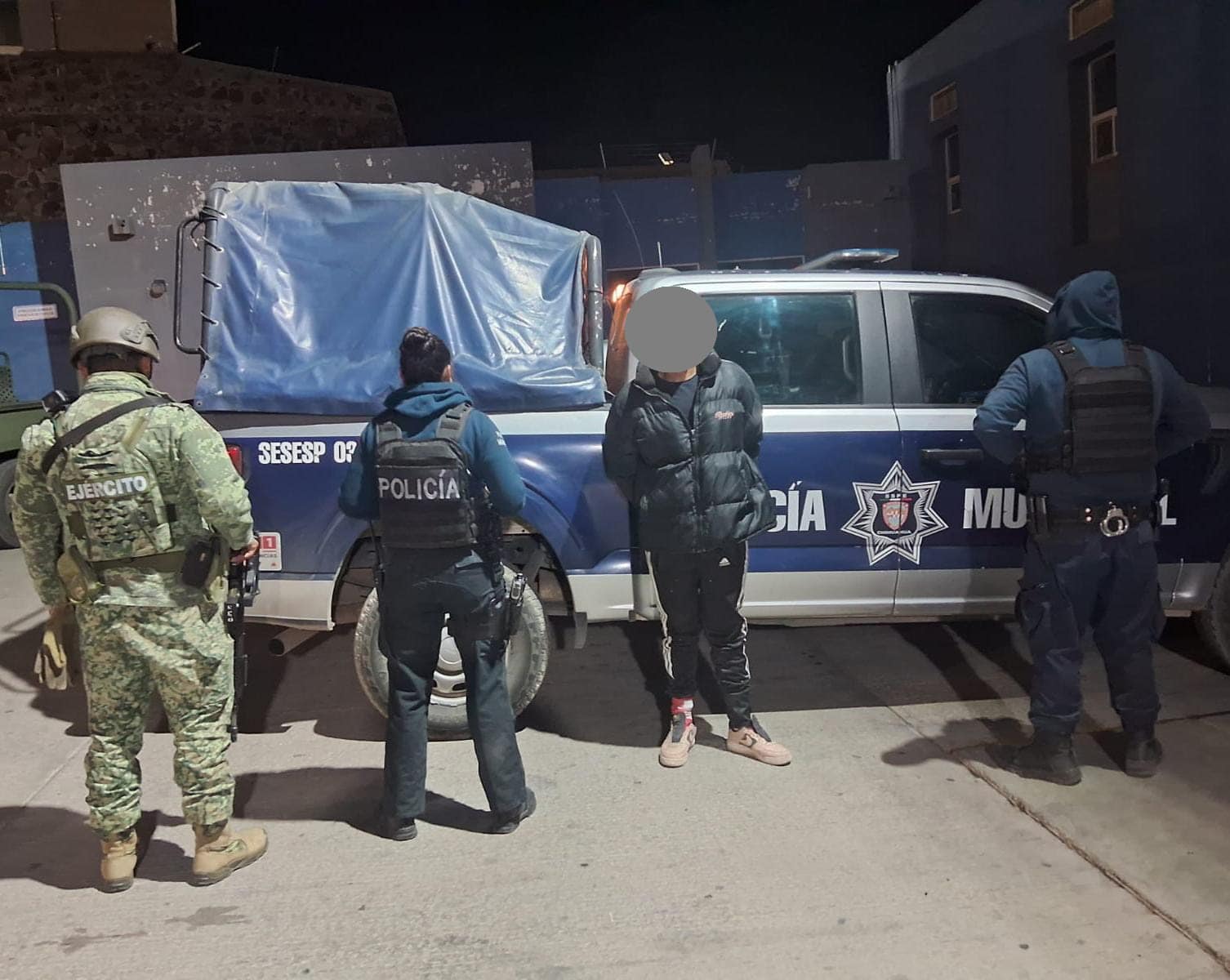 Cuauhtémoc, Chih.- Durante labores de prevención y vigilancia, agentes de la Policía Municipal detuvieron a un hombre en posesión de un arma de fuego y una sustancia con características similares a la metanfetamina en la colonia Emiliano Zapata.