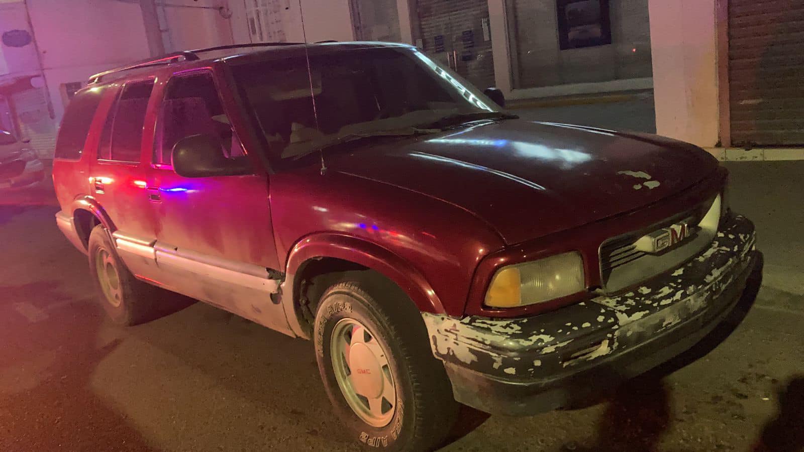 En recorridos de prevención y vigilancia, los agentes observaron un vehículo en color guinda, marca GMC, línea Jimmy, con matrícula ENM-44-80, el cual estaba estacionado y con el vidrio lateral derecho abierto.