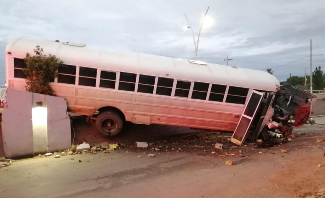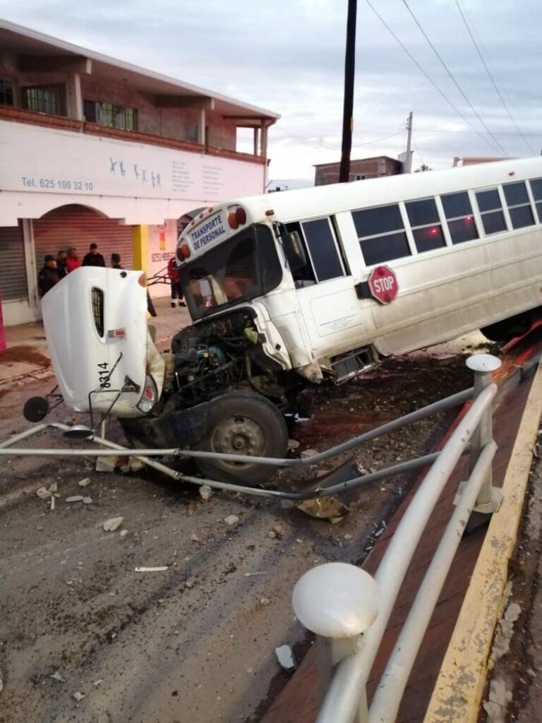 Cuauhtémoc, Chih.-Un autobús de transporte de personal de una empresa local se impactó esta madrugada contra el barandal de contención en la Calzada 16 de Septiembre y Avenida de los Vientos.
